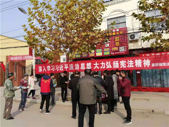 12月4日是第七個國家憲法宣傳日。為深入學習宣傳習近平法治思想,努力營造和諧穩(wěn)定的鄉(xiāng)村環(huán)境和法治氛圍,推動全鎮(zhèn)“深入學習宣傳習近平法治思想、大力弘揚憲法精神”。崔橋鎮(zhèn)組織司法所、派出所等采取多種形式,開展了憲法宣傳。