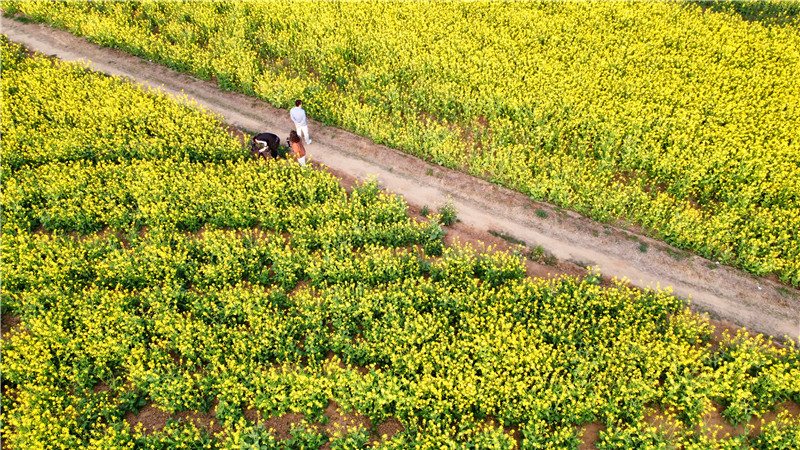 4月2日,春日明媚,沙潁河兩岸一片片金燦燦的油菜花“染黃”了大地,空氣中彌漫著香氣,大片的油菜花和漂亮的村居、田間勞作的農民交織在一起,如詩如畫,美不勝收,讓人心曠神怡。作為春日大自然最美的顏色,成片的油菜花海成為旅游愛好者追逐的風景。