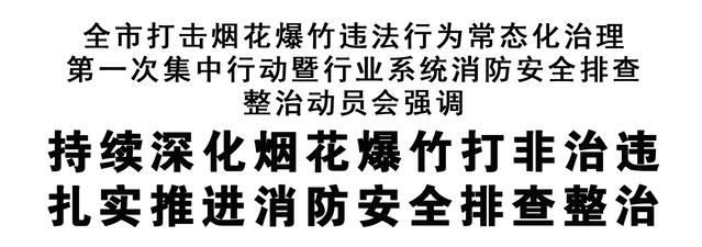 會(huì)議指出,安全重于泰山。各級(jí)各部門要準(zhǔn)確把握我市當(dāng)前煙花爆竹和消防安全的嚴(yán)峻形勢(shì),深刻汲取事故慘痛教訓(xùn),時(shí)刻繃緊思想之弦,緊盯系統(tǒng)性風(fēng)險(xiǎn)和機(jī)制性問題,持續(xù)深化煙花爆竹打非工作,扎實(shí)推進(jìn)消防安全排查整治,最大限度防范遏制各類事故發(fā)生,全力保障人民群眾生命財(cái)產(chǎn)安全和社會(huì)大局穩(wěn)定。