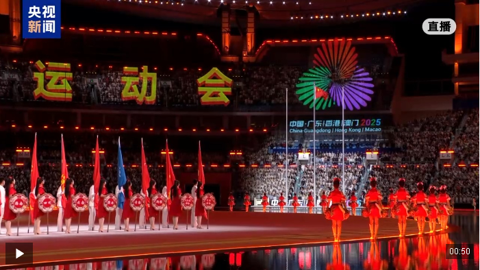 十五運會開幕式現(xiàn)場全體起立,升中華人民共和國國旗,奏唱中華人民共和國國歌。
