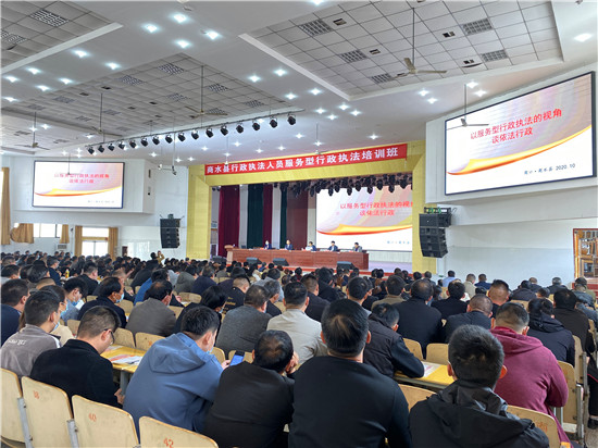 10月19日,商水縣召開(kāi)行政執(zhí)法人員服務(wù)型執(zhí)法培訓(xùn)會(huì)??h委常委、政法委書記、縣政府黨組成員王勇,市司法局黨組成員、副局長(zhǎng)鄭啟新,市司法局依法行政指導(dǎo)科科長(zhǎng)楊玉芹出席培訓(xùn)會(huì)??h司法局黨組書記、局長(zhǎng)王洪輝主持會(huì)議。
